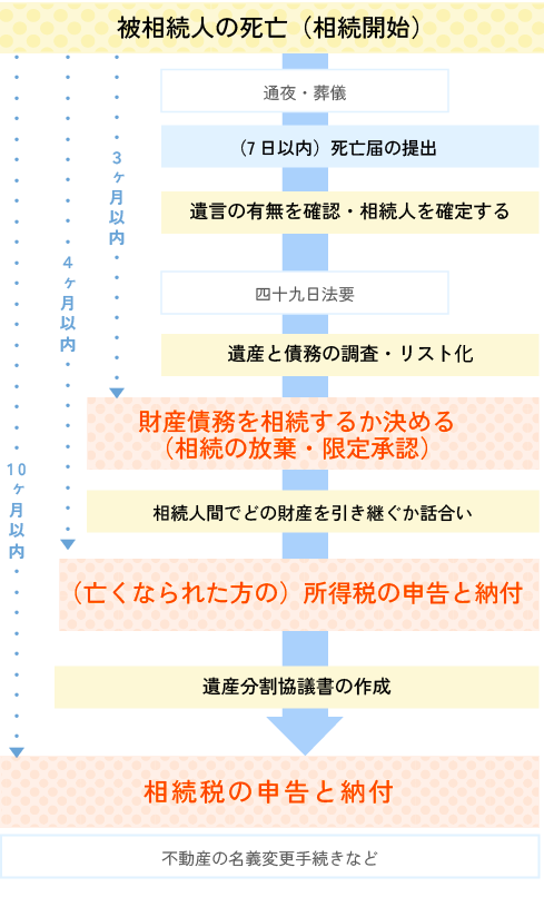 大切なご身内の方が亡くなられ、葬儀など慌ただしい日々が落ち着くと、次に必要となるのが相続手続きです。相続財産を相続人の間で分割し、基礎控除額を超える財産がある場合には、相続税の申告が必要となります。相続税の申告期限は、被相続人が亡くなられた日の翌日から10か月以内 と定められています。